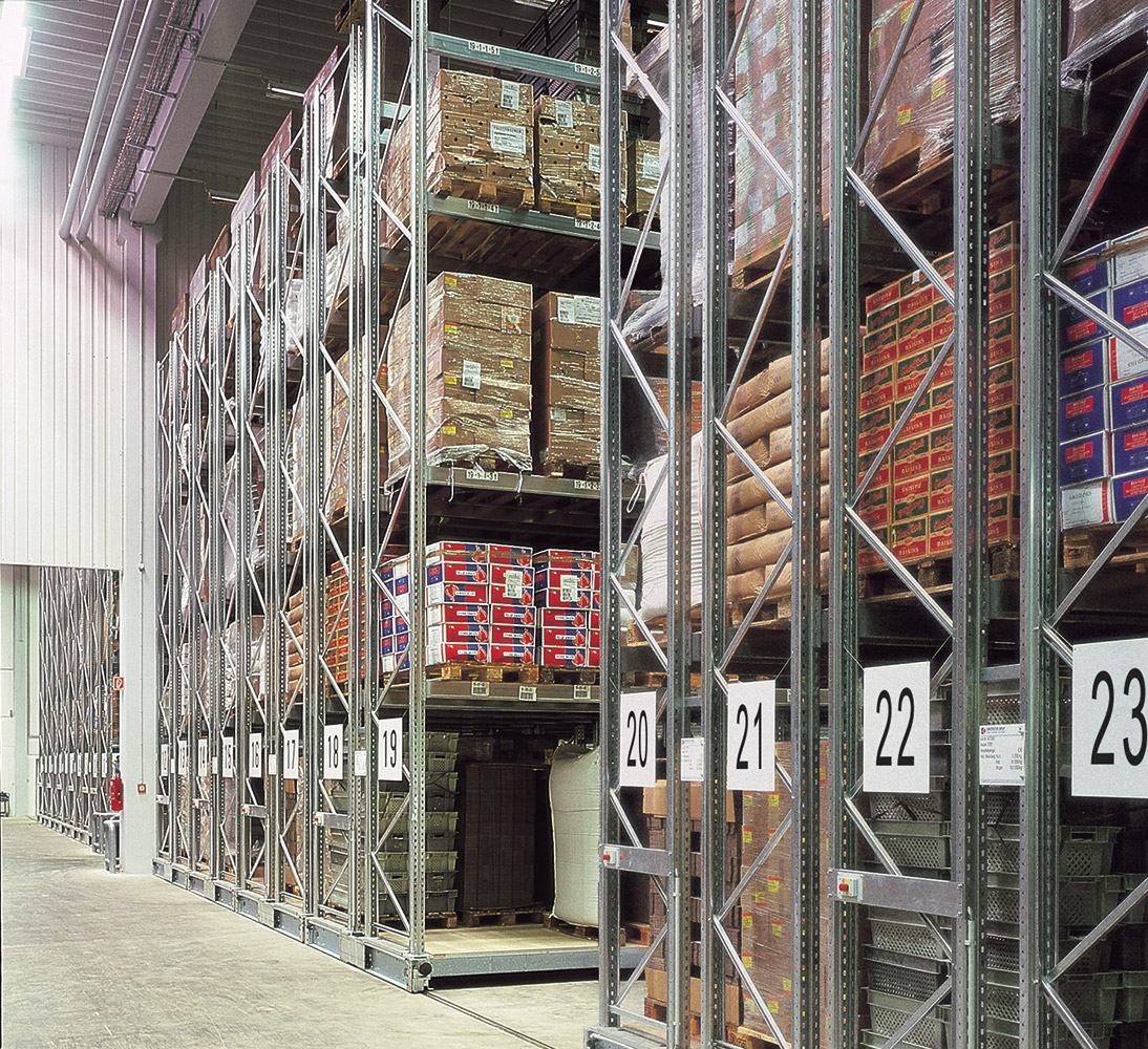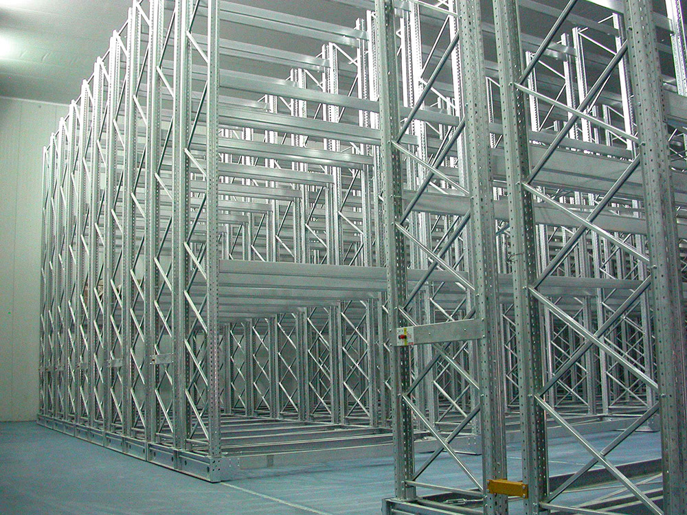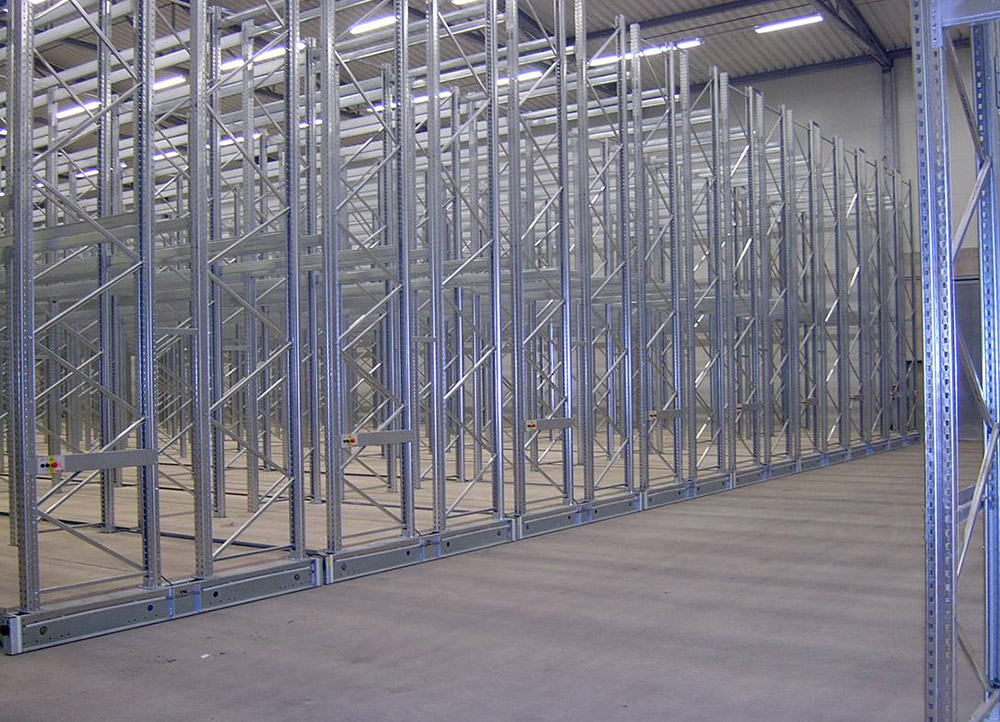 Τα ράφια τοποθετούνται πάνω σε ηλεκτροκίνητες βάσεις, έτσι ώστε να χρησιμοποιείται μόνος ένας «κινητός» διάδρομος, που ανοίγει ανάλογα με τη σειρά των ραφιών στην οποία ο χειριστής επιθυμεί να εργαστεί.