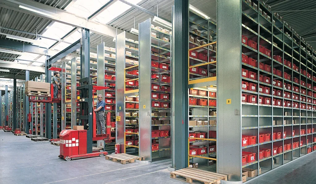 Η PEBRO επίσης εξόπλισε την ALUMIL με 4 ηλεκτροκίνητα ανυψωτικά μηχανήματα πλάγιας φόρτωσης τεσσάρων κατευθύνσεων, ειδικά για picking πάνω από τα ράφια.